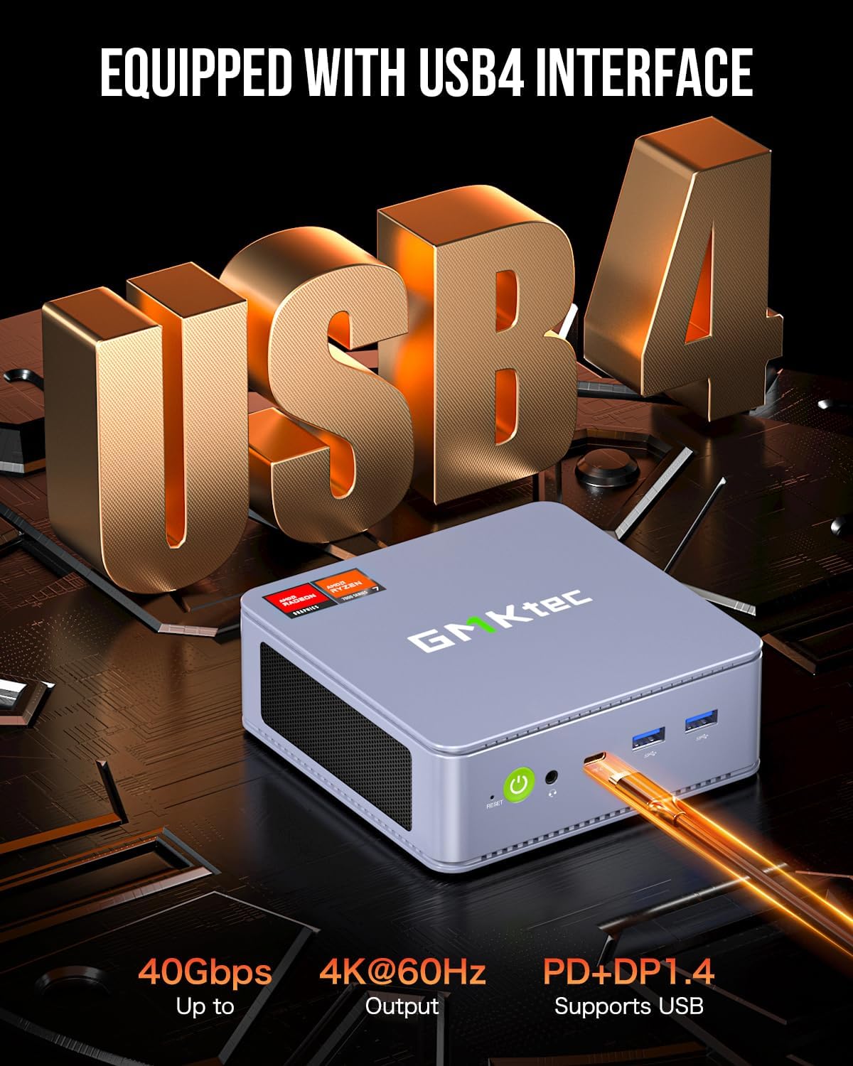 ✅【Powerful Ryzen 7840HS CPU】GMKtec Ryzen 7 7840HS(8C 16T、16 MB L3 Cache、3.8-5.1 GHz) is an ultra-thin processor made using TSMC 4nm FinFET process.The mini gaming pc 7840HS processor is equipped with the latest AI chip and its performance is 300% higher than that of 6nm process.7840HS ryzen mini pc has a high-performance “zen4” processor architecture,which can provide higher single-thread and multi-thread performance,pre -installed windows 11 pro, operate more stable and faster.