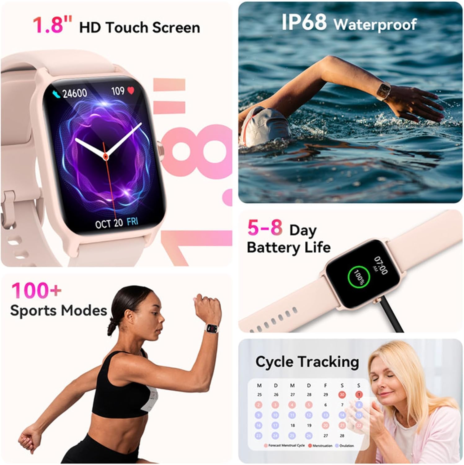 Gydom Smart Watch for Women -Answer/Dial Call & Alexa Built-in, 1.8″ Touch Screen Fitness Watch with Heart Rate SpO2 Sleep Monitor, 100 Sport Modes, IP68 Waterproof Activity Tracker for iPhone Android