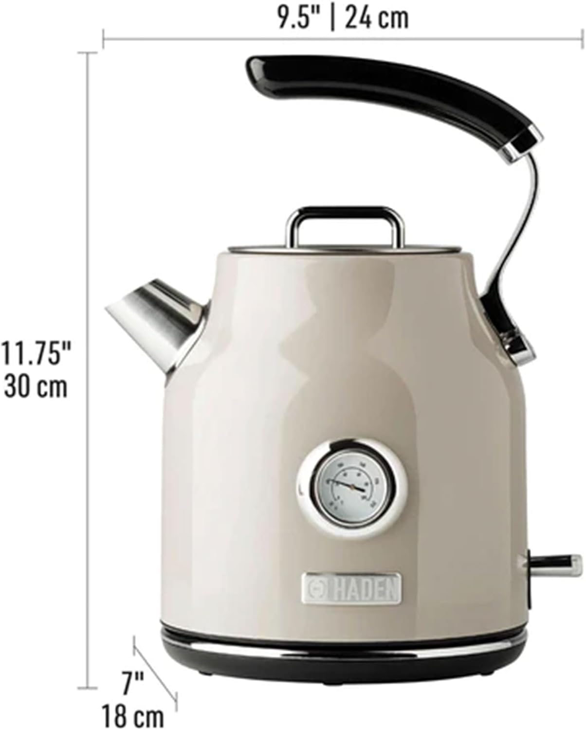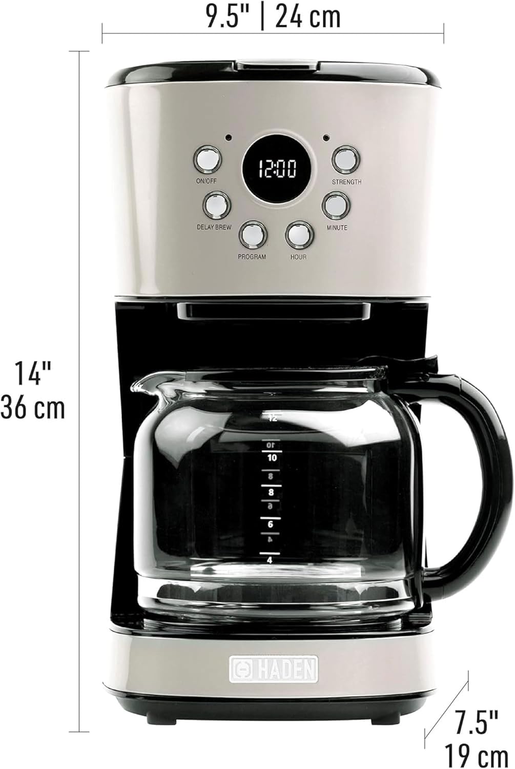 Brighten your morning routine with a steaming mug of your favorite brew using the Haden 12-Cup Programmable Home Coffee Maker. Designed with convenience, this innovative machine offers the caffeine boost you need. Though it looks like an average coffee maker, it boasts functions classic makers can only dream of. With programmable features, you can select your desired strength and time your brew. The 30-second anti-drip function allows you to pause dispensing, and the machine automatically deactivates after 120 minutes. Prepare up to 12 cups of coffee in the included glass carafe and tame the morning beast within you. The washable water filter ensures long-term use. Complement your coffee routine with the Haden Dorset 1.7 Liter Stainless Steel Electric Kettle, designed for convenience and versatility. Its sleek, sturdy stainless steel housing and 1.7-liter capacity allow you to heat or boil ample water. The 360-degree base ensures stability, while the indicator light signals when water is boiled. The auto shut-off feature covers you if you forget to turn it off. Additional features include a retro temperature gauge, water-fill window, and removable filter, with Boil-Dry cut-off protection for safety. BPA-free internal components ensure peace of mind. The Haden Dorset Kettle is a versatile addition to your kitchen, perfect for tea, hot chocolate, pour-over coffee, or any warm beverage.