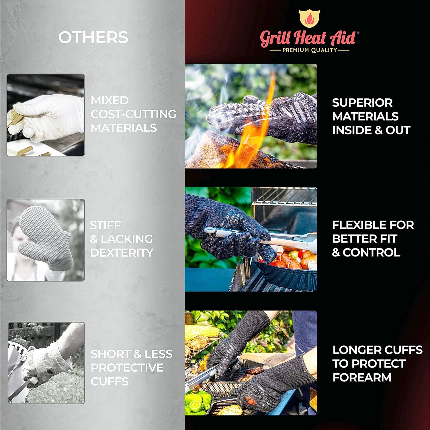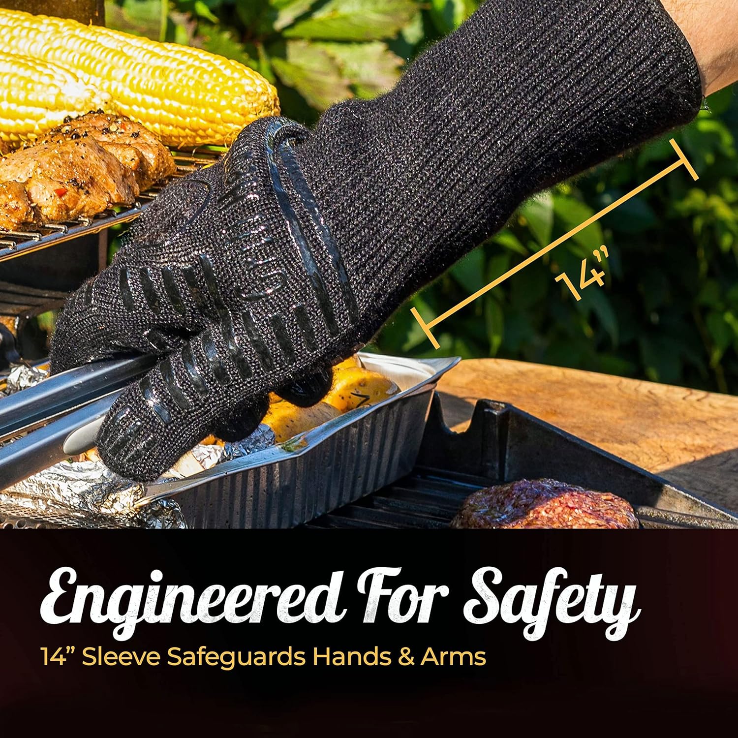 Heat Resistant Silicone BBQ Gloves – Fire Protection up to 1472°F – Insulated Glove Set for Hot Barbecue, Grill, Smoker, Baking, Cooking, and Cutting – Indoor or Outdoor Mitts Fit Men and Women