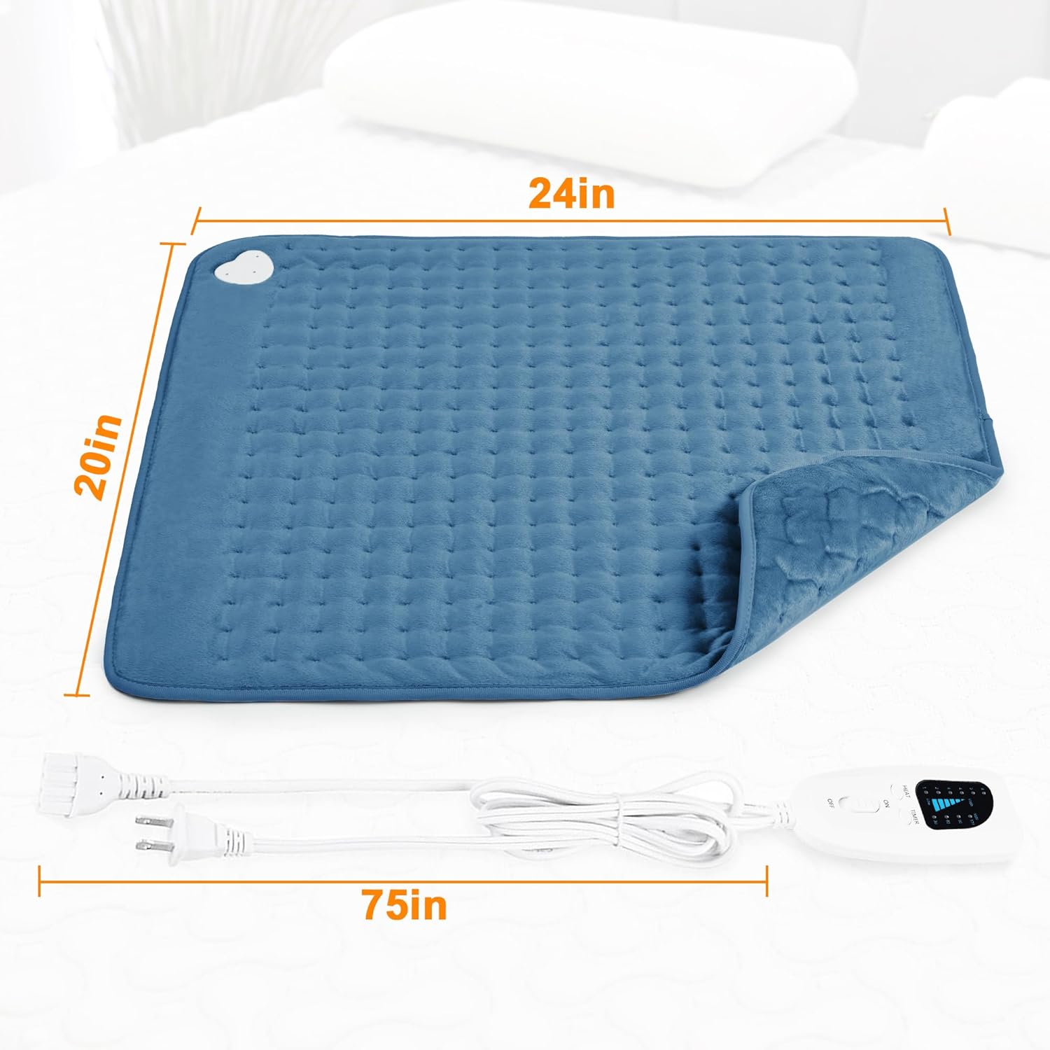 【Heating Pad King Size and Beautiful Colors】:We heating pad have different sizes for you to choose from, including 12”x24”, 20”x24 ”and 17”x33”,you can find a heating pad size that is more suitable for you here. The rich and colorful colors give you more choices. With 75 inch power cord,you can comfortably lounge on the couch or relax in bed. (Do not use as a seat cushion)