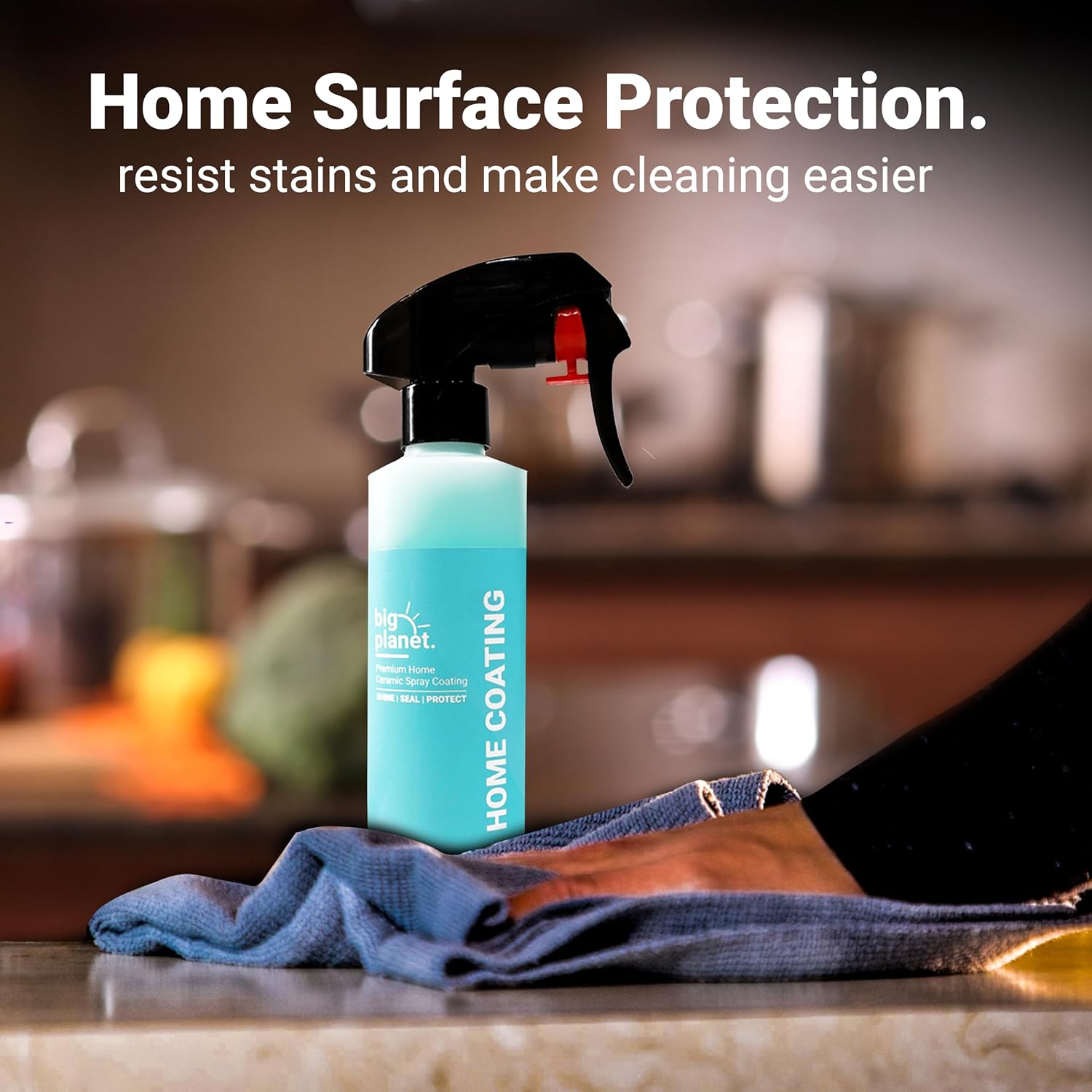 Our mission at Big Planet is to revolutionize surface protection by providing homeowners a convenient, non-toxic solution to protect your home surfaces. Our Premium Home Ceramic Spray Coating will withstand the test of time, ensuring long-lasting results. This formulation gives you the power of protection, while improving the look of your home surfaces.