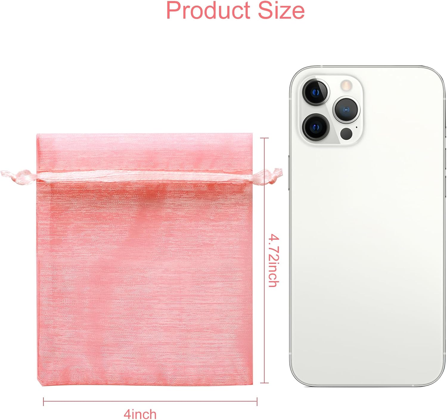 Hopttreely Sheer Organza Gift Bags, 4×4.72 Pouches Candy Jewelry Wedding Party Favor Present Bags Wrapping Supplies… (Pink)