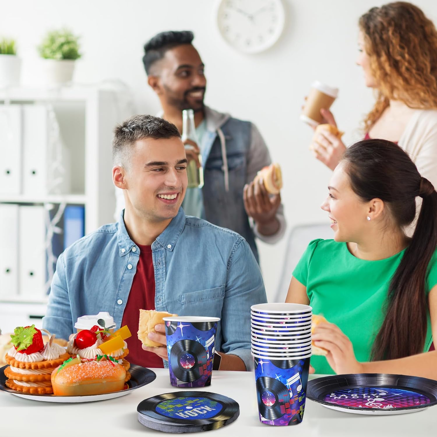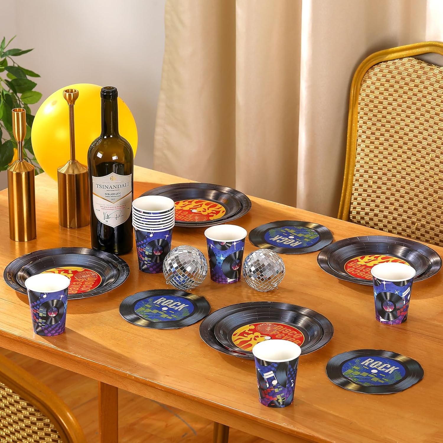 Authentic 50’s Design: embrace the classic nostalgia; Our paper plates, paper napkins, and cups feature cheerful 50’s disco and vinyl record design; Ideal for various occasions, these party accessories will add a classic, retro touch that your guests will love