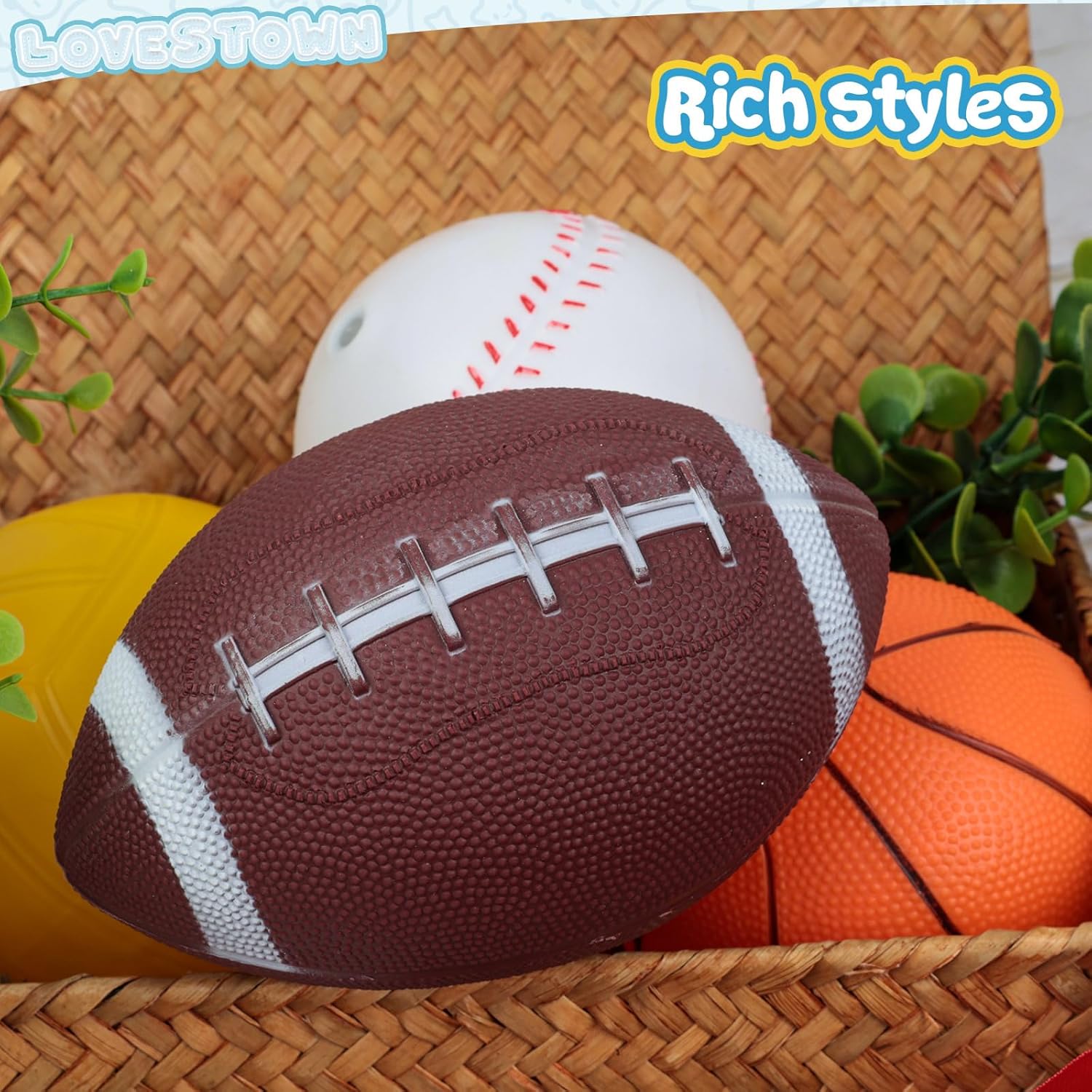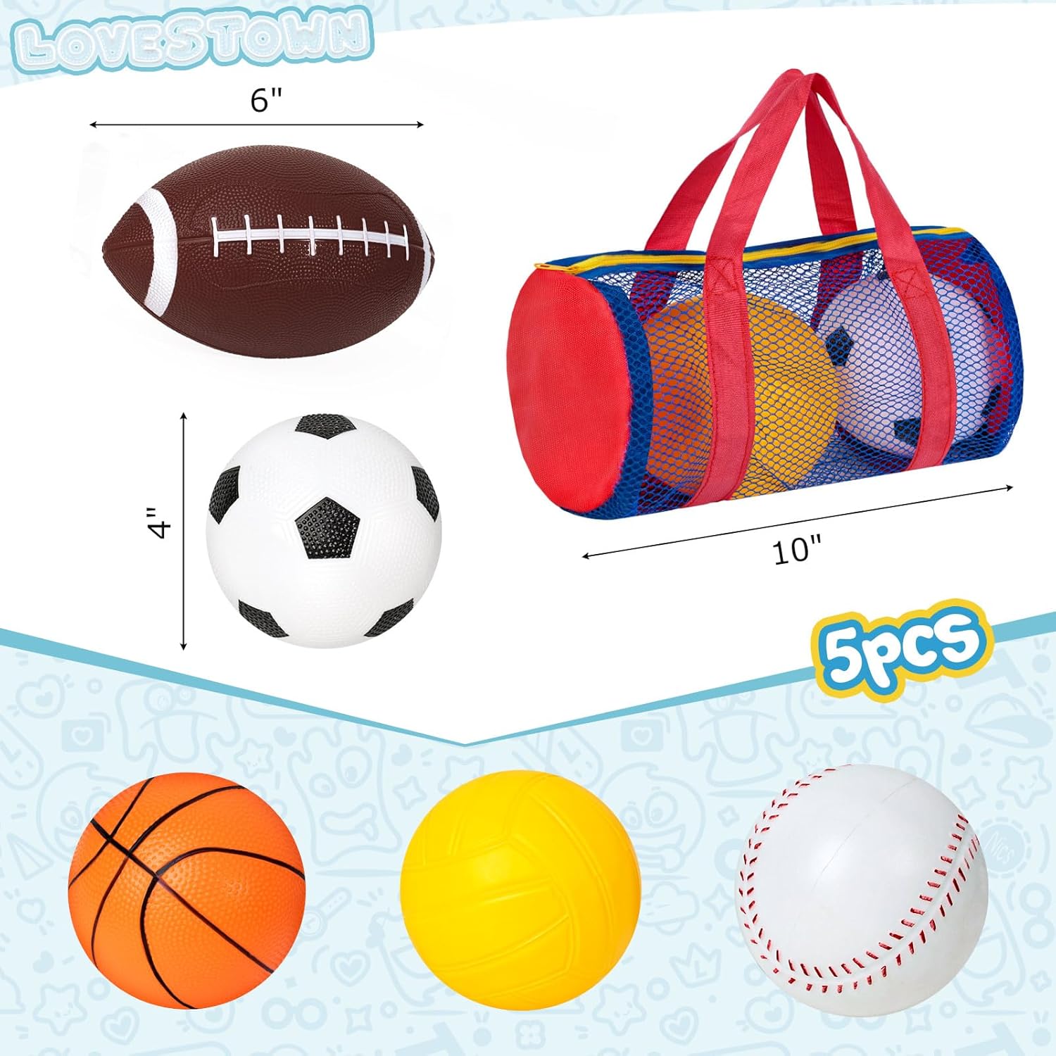 LovesTown 5PCS Sports Balls with Pump, 4″ Inflatable Playground Balls with Duffle Bag Soccer Football Baseball Volleyball Basketball for Toddlers Kids
