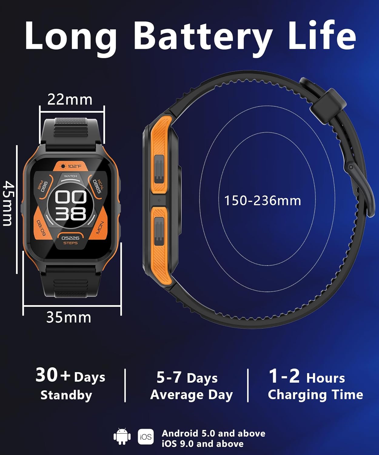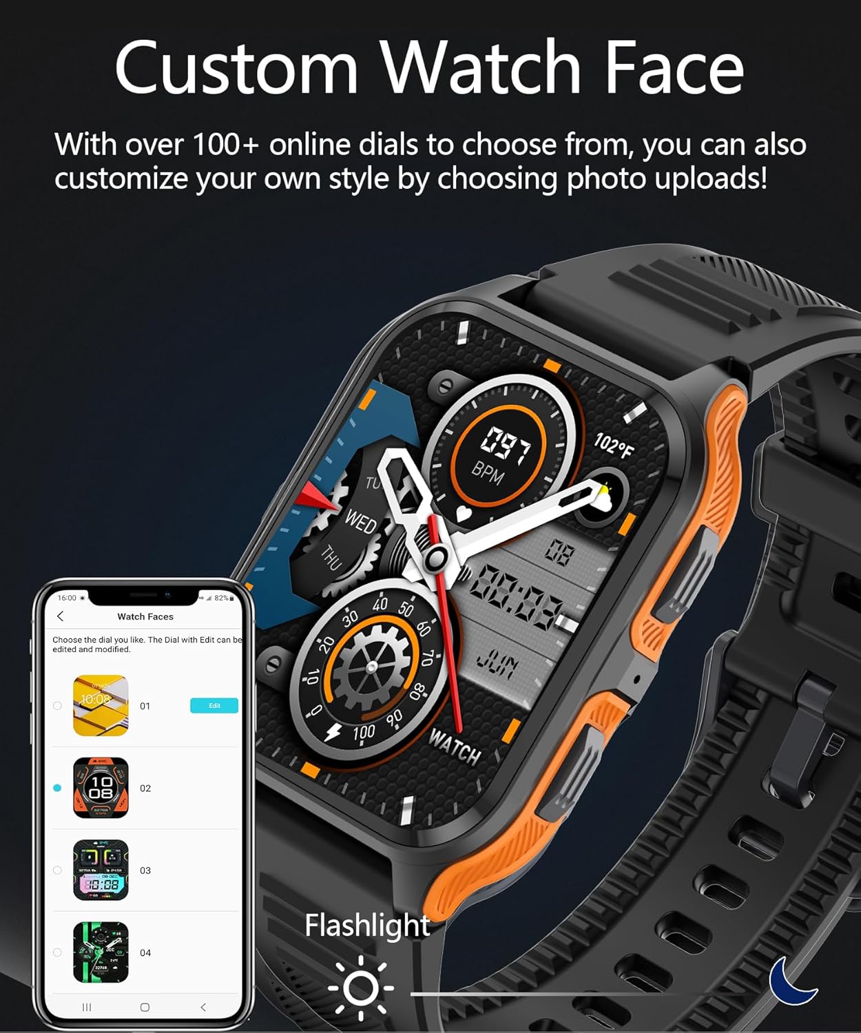 This military smart watch is made of durable, high-quality materials, is waterproof, dustproof and shockproof, and features an ultra-thin case design that can easily face any outdoor environment.