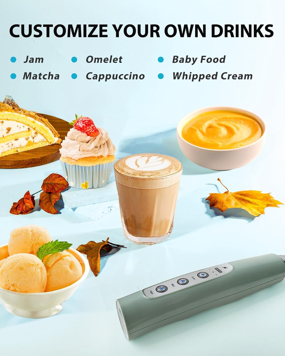 🍧【Ergonomic Portable Milk Foamer Frother】This milk frother handheld features an ergonomic handle, making it effortless to froth and create delicate foam. Its lightweight and compact design allows you to take it wherever you go. Whether it’s a family gathering, a friend’s birthday party, or a company team building event, this hand frother rechargeable can be the highlight of the party. Make a variety of delicious drinks and snacks to add fun and interactivity to the party.
