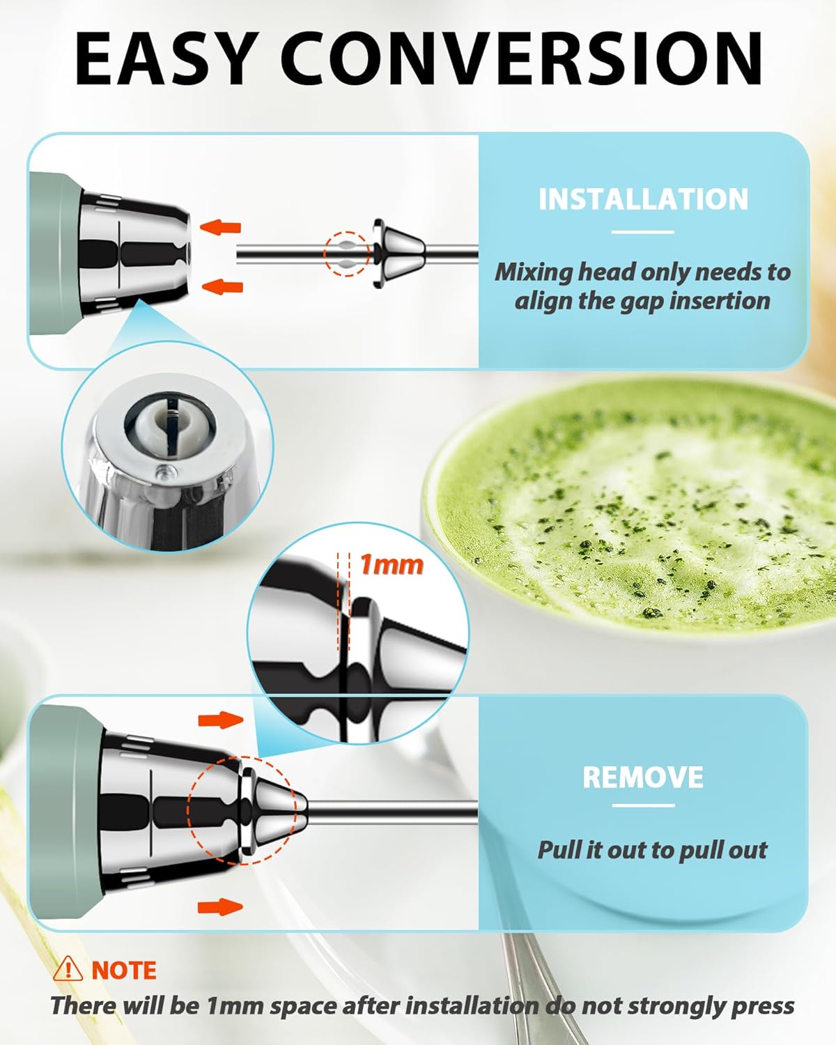 🥛【Food-grade Coffee Frother Handheld】This hand frother features 3 detachable whisking heads made of high-quality stainless steel. The wand of the electric whisk is crafted from food-grade ABS material. You can feel free to use this coffee mixer to create wholesome and delectable drinks and desserts for your loved ones. Let you enjoy the joy of diy drinks! The drink mixer is easy to use and clean. About Washing: No Need to Disassemble, Just rinse this usb frother with running and clean water.