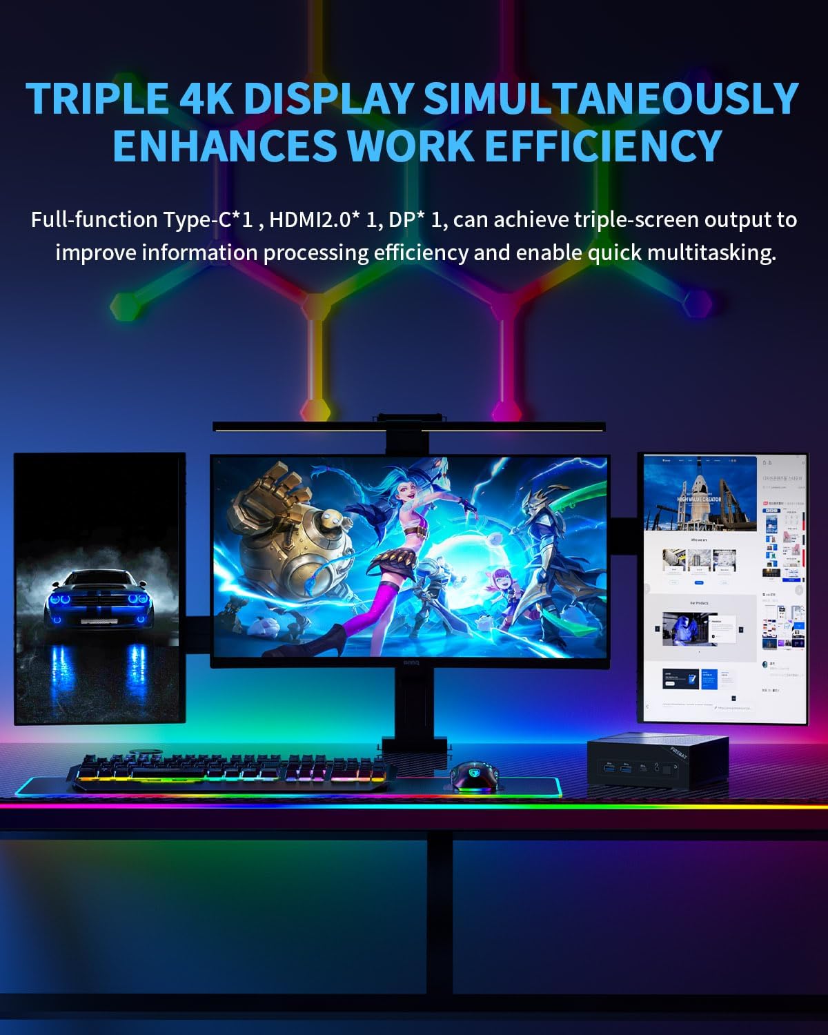 - 4K Triple Screen Display: DP (maximum support 4K 160Hz), HDMI (maximum support 4K 60Hz), and Type-C (maximum support 4K 60Hz) ports.