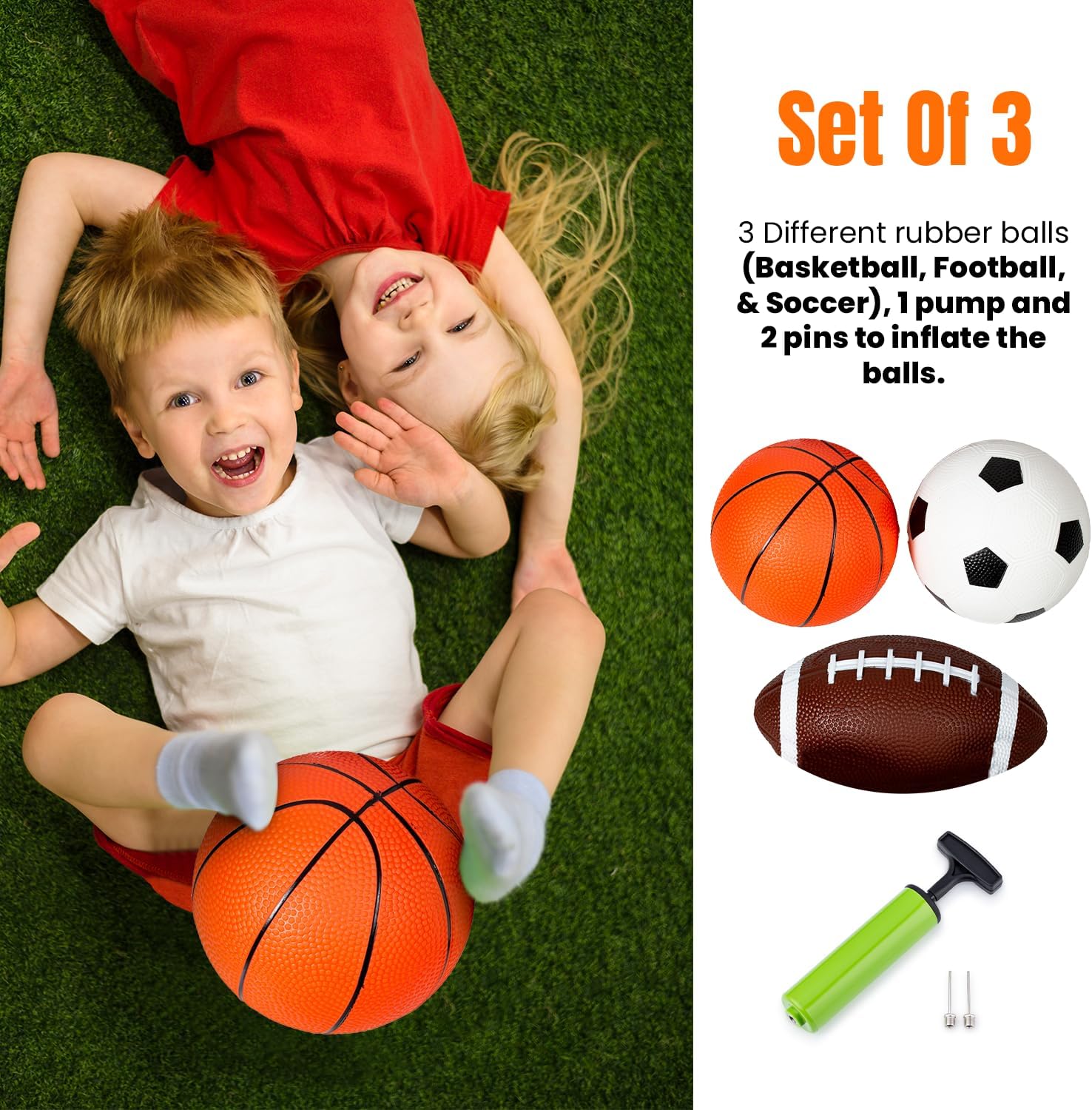 New Bounce Soft Sports Balls for Toddlers – Set of 3 5″ Balls; Basketball, Football, and Soccer – Outdoor Playground Mini PVC Balls