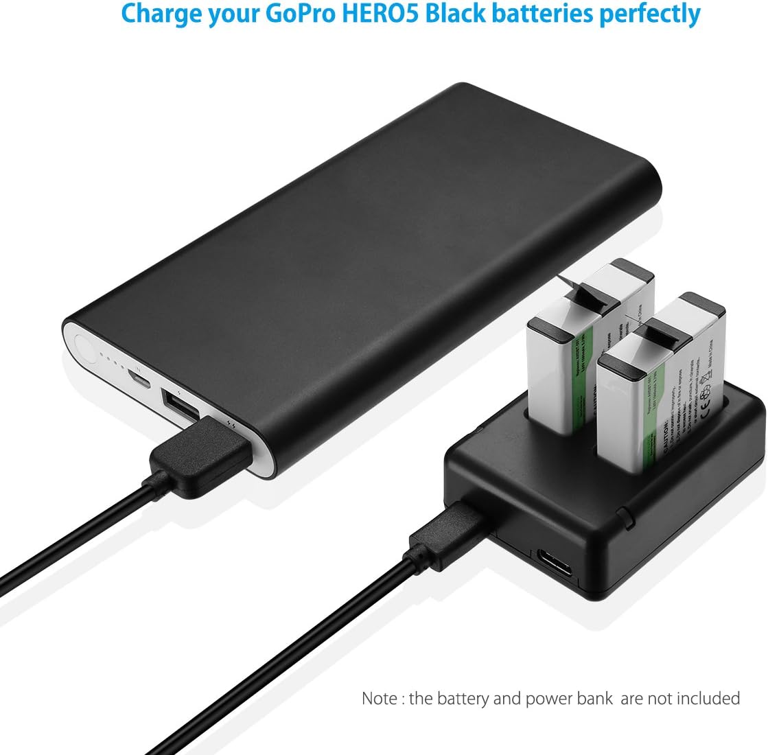 Dual Battery Charger makes it is convenient to charge two HERO8 HERO7 HERO6 HERO5 Black batteries simultaneously