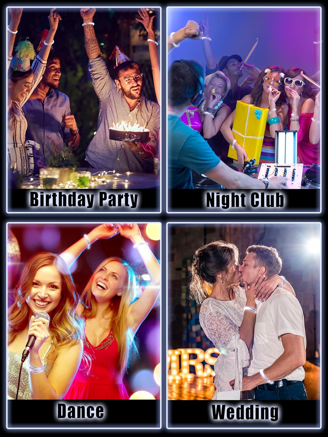 Wide Decoration Scene: the LED party bracelet is suitable for most occasions, such as weddings, bridals, engagements, anniversaries, parties, birthdays, Christmas, concerts, New Year, rave parties and so on, adding a jubilant and exciting atmosphere