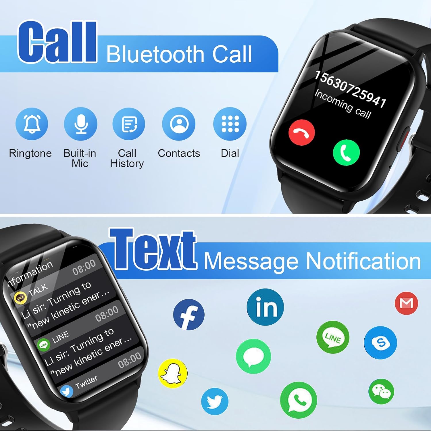 【Bluetooth Call & Message Notifications】 The smart watch features HD speaker and bluetooth 5.3 technology, after the smartwatch is connected with the Mobile app, you can make/answer and reject calls. The smartwatch will vibrate and reminder you to view the information on the screen,and you won’t miss any important calls or messages from your smartphone. You can also check the call history, contact store and messages from Facebook, Whatsapp, Twitter, SMS, etc. (Note: After connecting Bluetooth, please turn on message and call notification in Smartphone APP.)