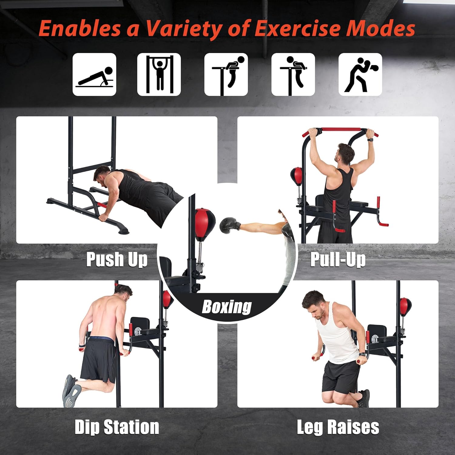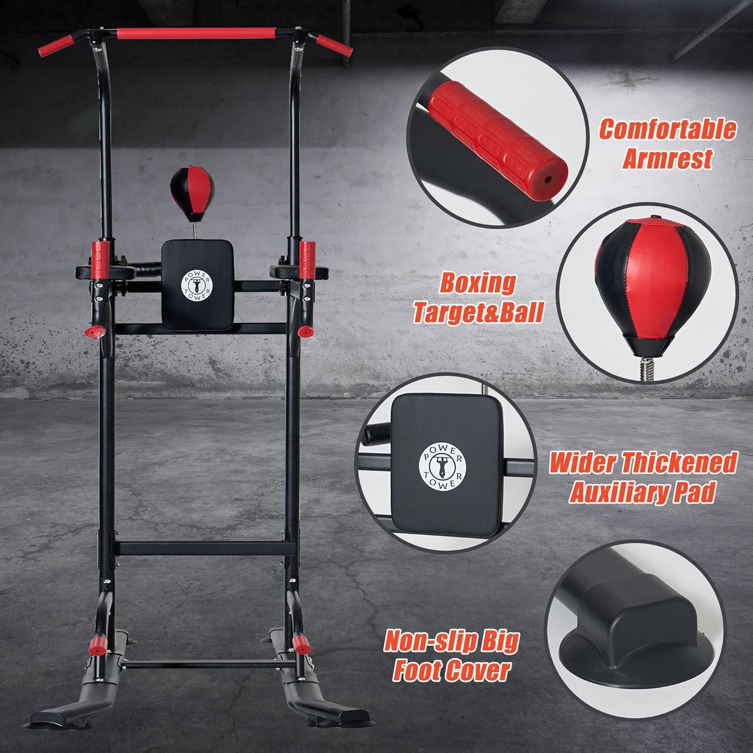 SogesPower Power Tower Pull Up Bar Station Multi-Function Adjustable Height Workout Dip Station Strength Training Equipment for Home Gym Fitness Equipment with Boxing Speed Ball &Spinning Target 400LBS