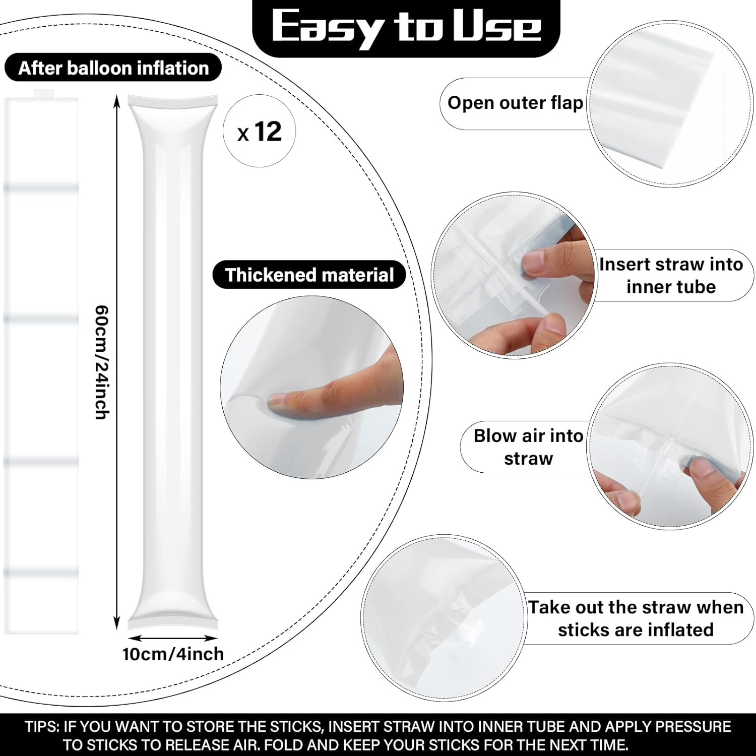 Notable Size Details: the thunder sticks measure about 60 x 10 cm/ 24 x 4 inches, the cheerleading poms measure about 25cm/ 10 inches in pom pom length, and about 10 cm/ 4 inches in handle length, and the size of the toy hand clapper is about 19 cm/ 7.5 inches long