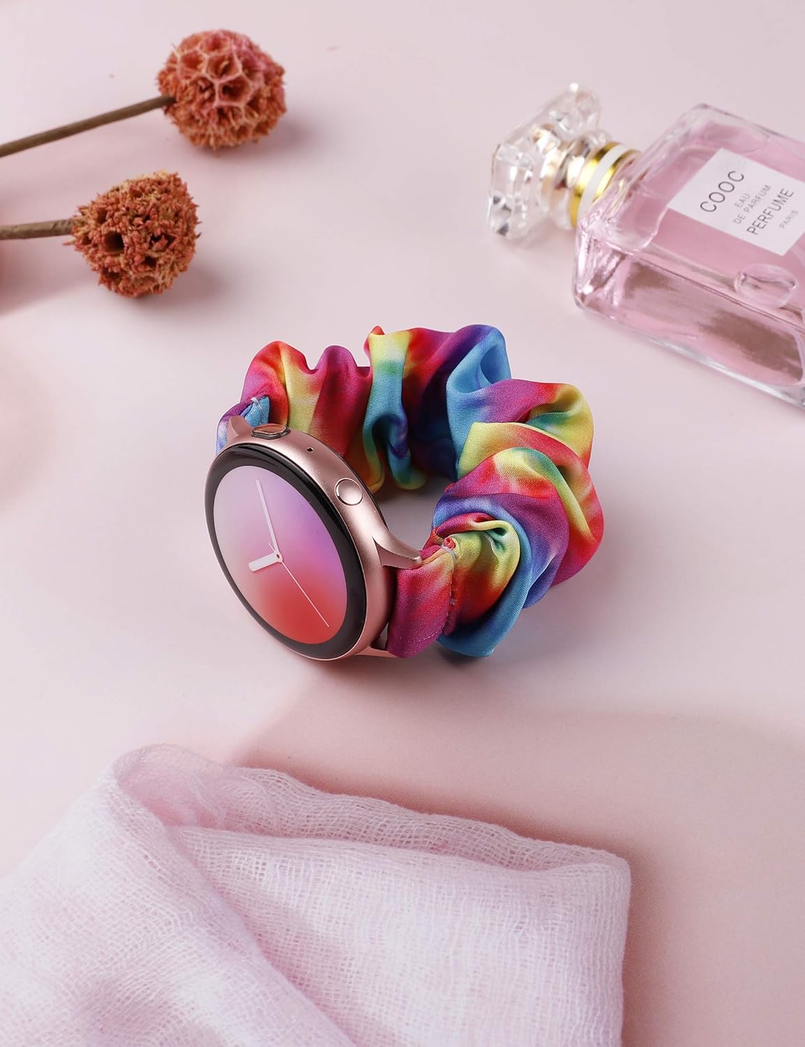 [Stylish Scrunchie Band] – Made of cotton & polyester fabric. Soft, flexible and skin-friendly. Just personalize your smart watch and show your personality.
