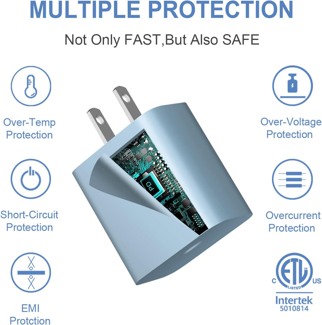 [C Charger Safety Protection]With built-in intelligent chip,USB PD fast power adapter provides over-current, over-voltage,over-heat and short-circuit protection for your devices to ensure safer charging.