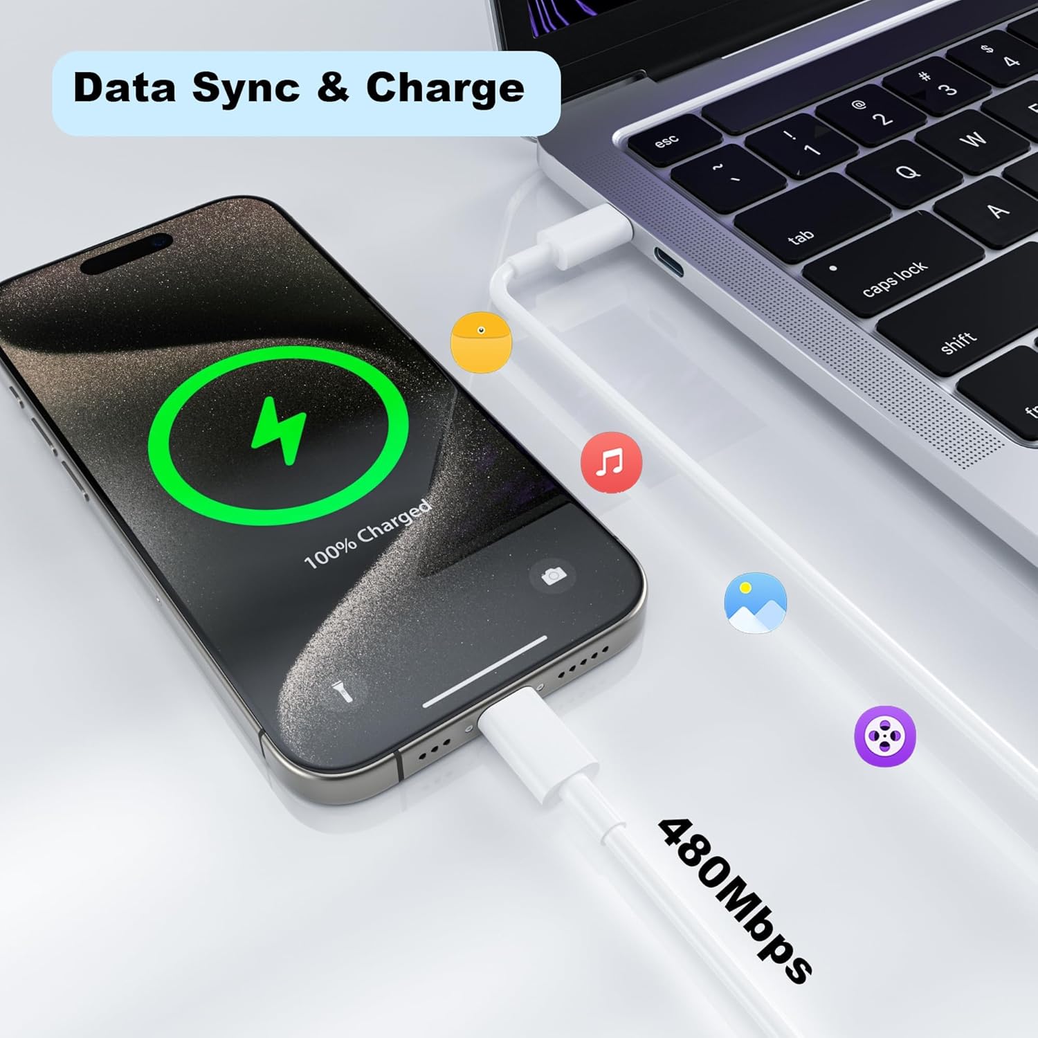 Speed The USB-C cable will provide optimal voltage and stable current for your iPhone/iPad, also a fast trasfering iPhone data cable up to 480Mbps(30MB/S).