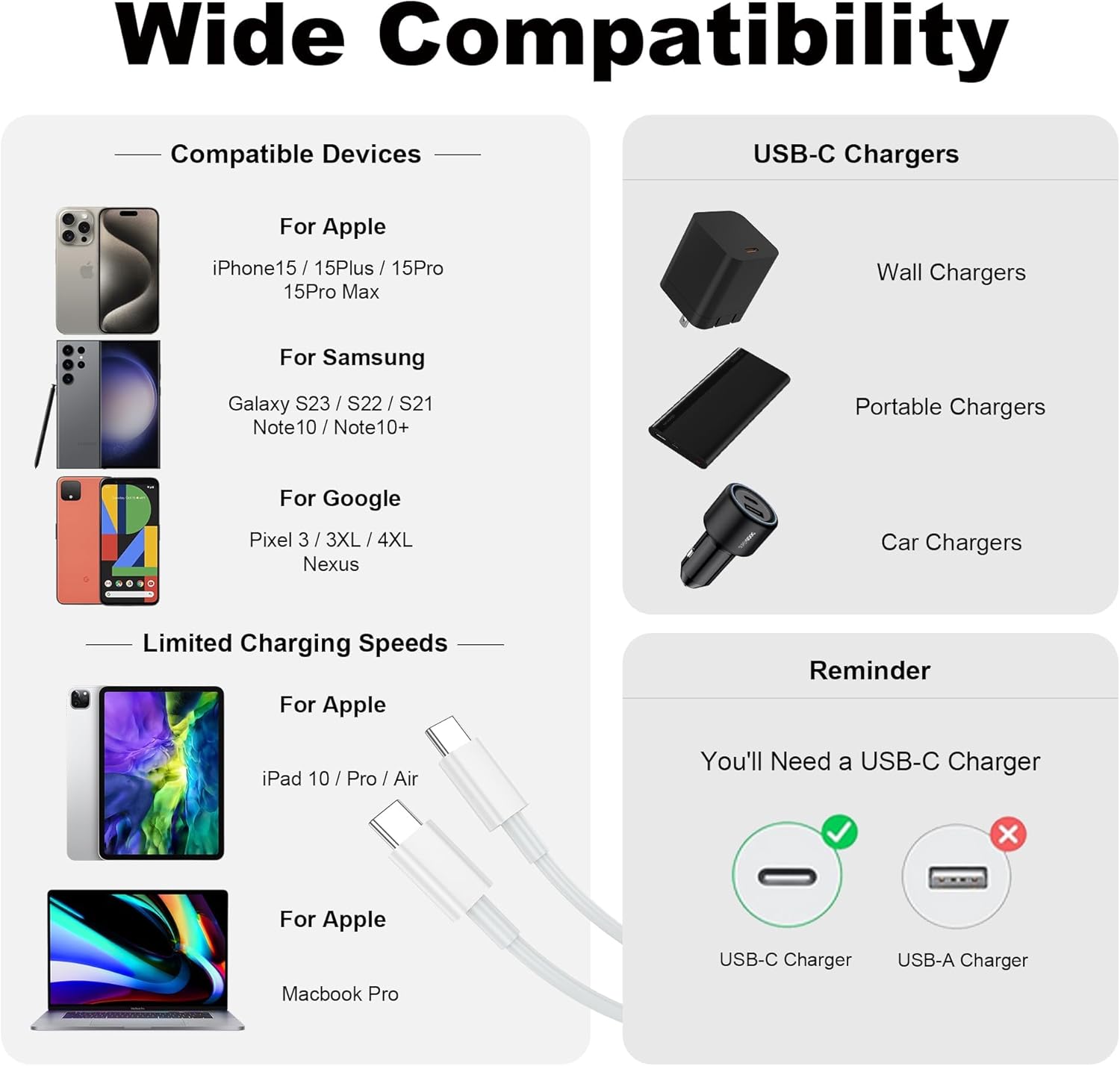 ✅【Universal Compatibility】This for iphone 15 charger cord for iphone 15/15 Plus/15 Pro/15 Pro Max, for Macbook Pro Air/Pro 13, for iPad Mini 6, for iPad Pro 2021/2020/2018, Air 2020, for Samsung Galaxy S23/S22/ S21/S21+/S20/S20+/S20 Ultra and more
