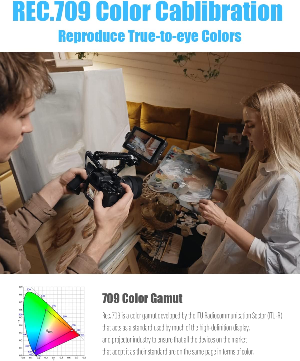 5.5inch full HD camera monitor with 1024×600 high resolution, tight pixel density and high brightness, produces excellent image quality and great visual experience for the photographer’s professional needs.