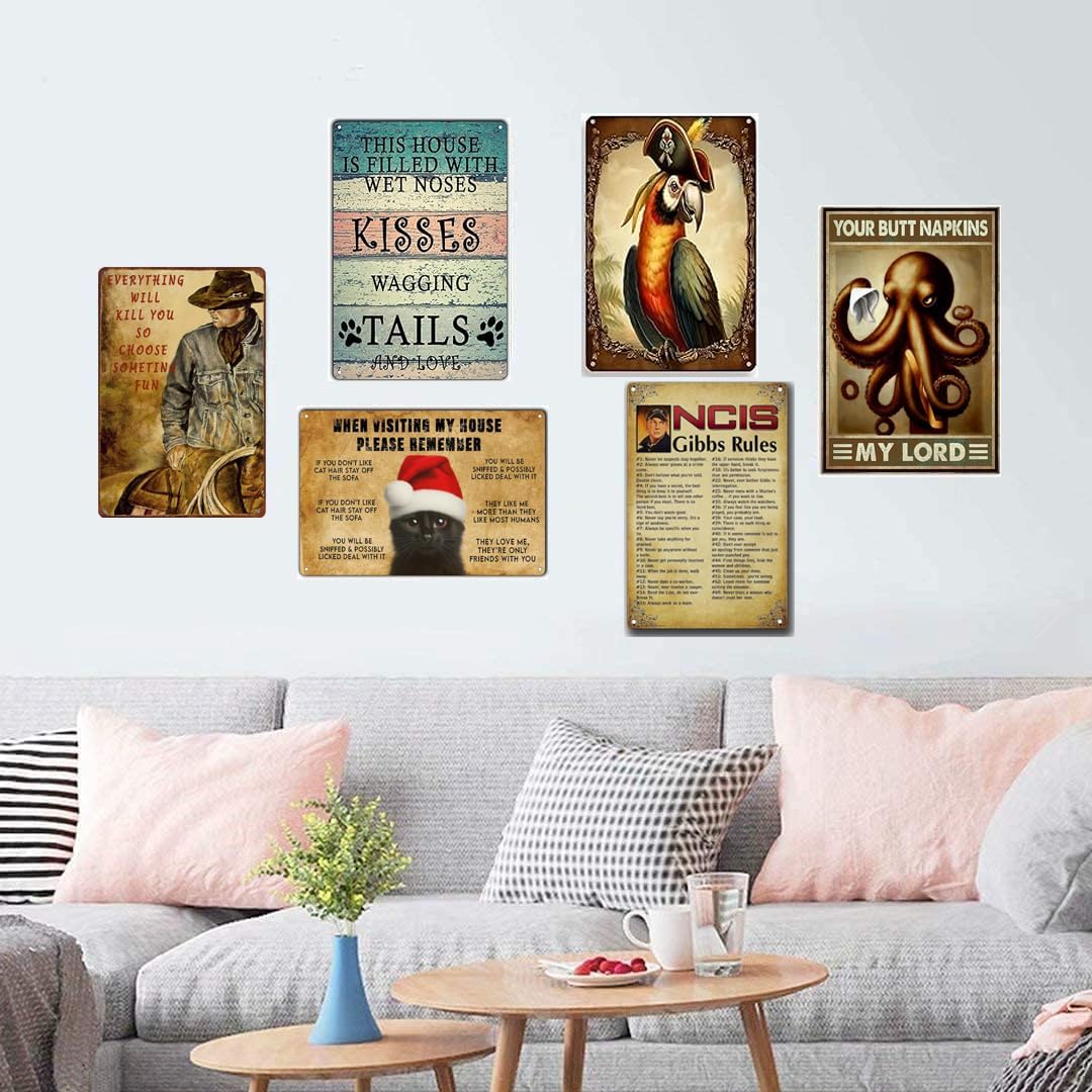 ” Metal Tin Sign Tin signs are just what a home or office needs for a touch of fun and nostalgia.Not only something with kitchen value,tin signs have a sort of artistic beauty. Features: ➤Made of heavy gauge metal. ➤This tin sign vintage decorative painting is manufactured with folded edges for safety and stability. ➤It is suitable for many places, such as bar, cafe, dining room, billiard house, hotel, club wall decoration, creating contracted but fashionable atmosphere. ➤Metal paintings appear to have the effect of rust, it is printed up, not really rusty. ➤Note: Due to the light, the color may show a little different. “