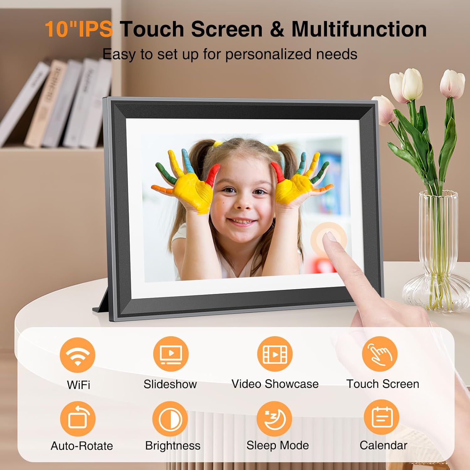 WiFi Digital Picture Frame 10 Inch Smart Digital Photo Frame Electronic with IPS Touch Screen, 16GB Storage, Auto-Rotate, Slideshow, Easy Setup to Share Photos or Videos via Free App from Anywhere