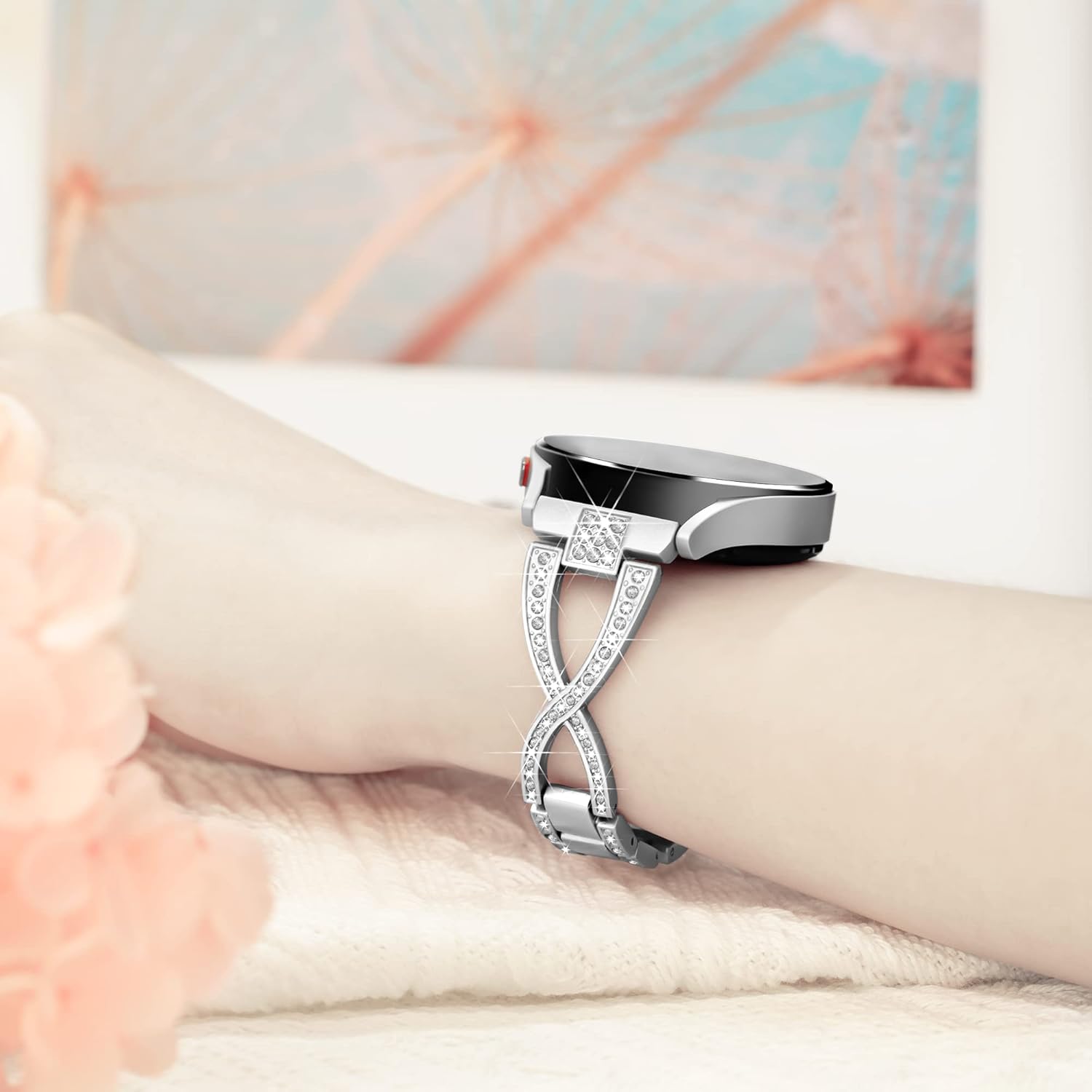 X-Shape 20mm Watch Band for Samsung Galaxy Watch 4 5 6 7 FE Band 40mm 44mm, Women Bling Metal Band for Samsung Watch Bands 7 6 5 4 Classic/5 Pro/Watch 3 41mm/Active 2-Silver